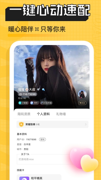 24小时在线,随约随玩,根据你的游戏类型和风格,极速匹配到声音好听、技术超强、服务贴心的大神;无论是超高技术的游戏高手,还是人美声甜的萌妹女神,提供1V1连麦陪玩服务,陪你一起荣耀钢枪开黑超神!