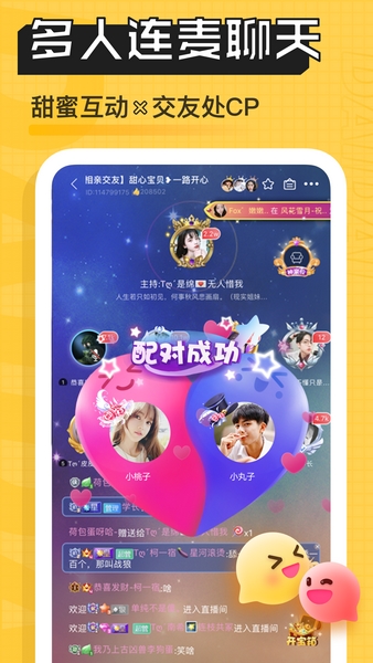 多人语音聊天室,实时声音速配,海量优质高颜值大神和你配对找对象,语音连麦、K歌点唱、相亲娱乐、扩列玩伴,用声音触达社交;音乐房间集齐各路甜音蜜嗓,声优歌姬尽情搭讪,你想听的这里都有;和同城附近的人匿名交友,分享你的故事和心情,闲聊唠嗑、情感交流、cpdd、压力倾诉、找寻挚友……认识新的伙伴,满足你的各项社交需求,擦出爱的火花!心动只在一瞬间~