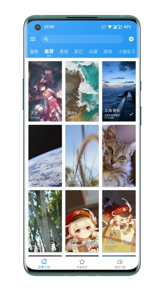 5.精选海量高清壁纸,预置常用分类,每天固定更新,只为您的手机桌面更加精彩;