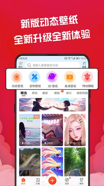 动态壁纸上传分享,自己拍摄主题和动态壁纸,直接设置为手机壁纸锁屏。