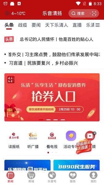 乐音清扬,全新上线,是乐清市融媒体中心全力打造的本土新闻客户端,为用户提供新闻,互动,视频,本地服务功能。
