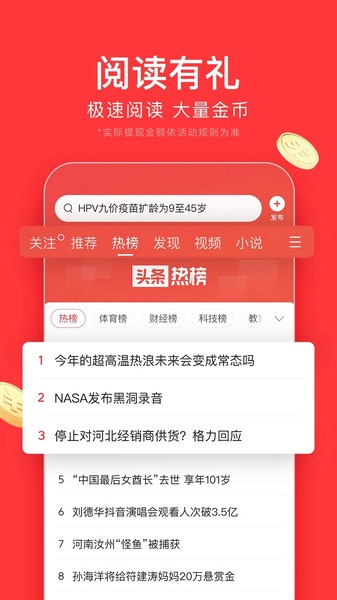 还有头条号订阅功能,一键关注自己喜欢的创作者,再也不用担心错过他们的更新了。App里还能发布自己的原创内容,和明星大V互动,感觉特别酷!最重要的是,它汇聚了海量的内容资源,小说、漫画、体育新闻、短视频……应有尽有,而且都不带广告,看得超爽。