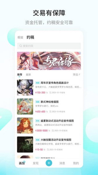 在画加平台上,您可以欣赏到各位杰出画师的作品,也能够找到那位完美匹配您需求的画师,并与其直接在线沟通。这个平台汇聚了来自二次元世界的创意,使您的梦想作品成真。当然,安全也一直是我们的首要任务。尽管存在极少数盗图行为,但"画加"以网易的声誉背书,保障了您的交易安全,让您的创作之旅更加放心。