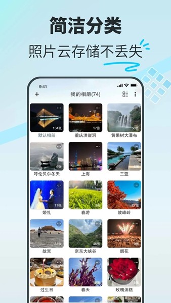 实时共享群相册,支持多人同时上传、浏览、评论、点赞、聊天,随时和亲友分享互动,如:亲友相聚、出门旅游、记录家庭日常生活、记录情侣爱情的点滴,记录孩子的成长足迹,记录公司发展历程等.