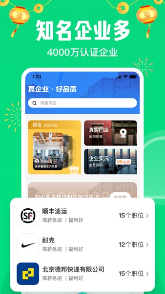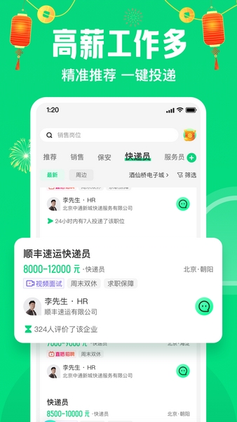 工资高、离家近、稳定、福利待遇好的工作应有尽有。百强名企入驻,轻松入职知名企业,让你在亲朋好友面前面子十足。随时随地,一对一直接沟通老板,当场敲定工资。