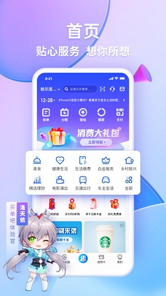 2、焕然一新:视觉全面贴心优化,入口平铺,账务信息、生活服务一览无遗,尽在掌握。