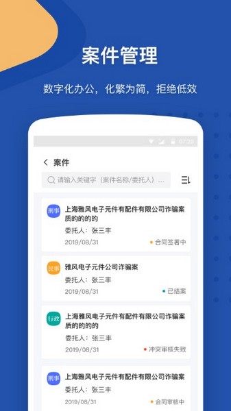 3、实时的案件进度信息,从案件详情中能清晰的看到每一个不同环节与对应当前位置;