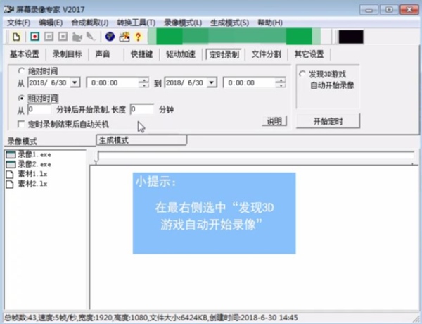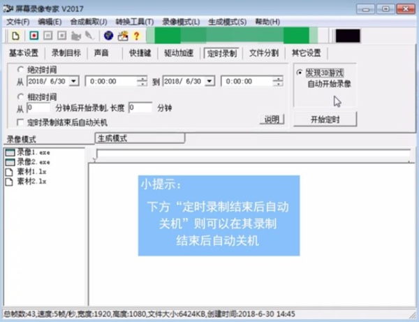 2、屏幕录像专家支持长时间录像并且保证声音同步。在硬盘空间足够的情况下,可以进行不限时间录象。