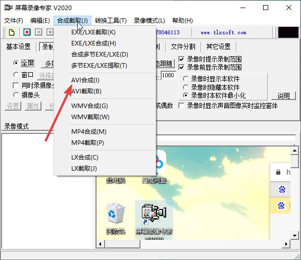 7、后期转换功能,支持LXE/EXE/AVI转成其它各种格式(MP4/FLV/GIF/WMV)