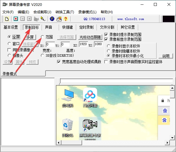 8、录制目标自由选取:可以是全屏、选定窗口或者选定范围。