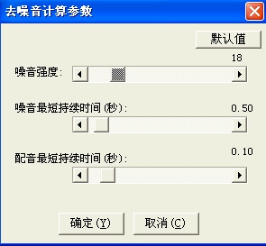 如果去噪音过量,应该调小“噪音强度”,如果去噪音不足,应该调大“噪音强度”,调节时不要一下子改变太多。其它两个参数一般不需要调节,噪音最短持续时间表示无配音区域(音量小)至少持续多长时间才能被处理为噪音区,配音最短持续时间表示小于此时间长度的音量高的声音可以被认为是噪音。按“确定”后,软件会根据新的参数计算出噪音区。重新计算后,如果还是不行,可以再重新计算,直到只有少数几个位置需要调整时,就不再需要再使用“重新计算了”了。