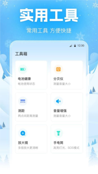 手机降温iPower的主要功能包括实时检测手机温度,并通过智能化优化系统实现快速降温。它可以帮助用户对手机内的图片、文档以及音视频等文件进行分类管理,使寻找文件变得轻而易举。内置的测距工具和分贝仪让用户能够随时测量距离与环境噪音水平。此外,还有放大镜功能,便于用户阅读细小的文字。软件还提供了文件备份、电池状态监测等功能,甚至能测量手机音量并进行增强处理,以及提供准确的天气预报服务。
