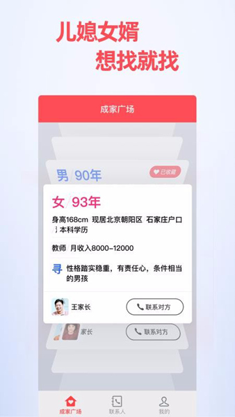 【成家广场】招女婿找儿媳,点击「联系对方」即可马上跟亲家通电话