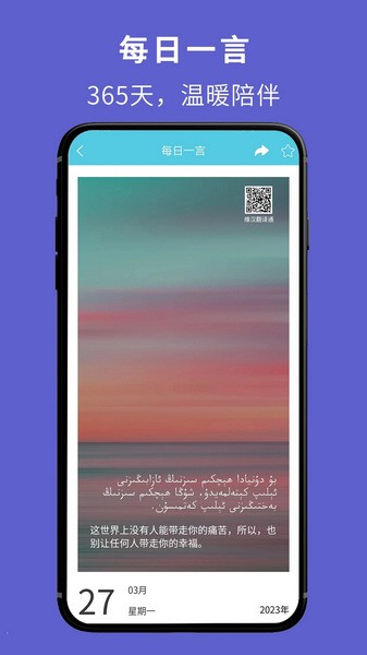 最让我觉得贴心的是它的“每日一言”功能,既能学语言又有趣味性。而且界面设计也很简洁,操作起来毫无负担。对于像我这样偶尔会遇到维汉翻译需求的人来说,这个工具真的节省了很多时间和精力。