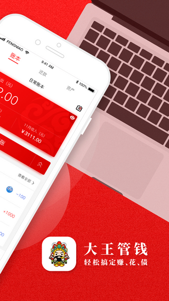 大王管钱,一键式智能资产管理App软件。大王管钱基于用户行为研究,采用先进的资产分析法,首创符合现代消费习惯的独特约束型记账模式。
