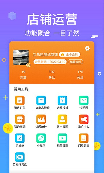 3、小程序、PC商铺功数据互通互联,商品、订单、资金可以直接在义乌购商铺中心进行管理,无需额外的管理运营成本。