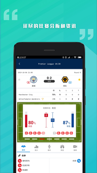 1、全面的覆盖世界主要联赛的现场比赛事件