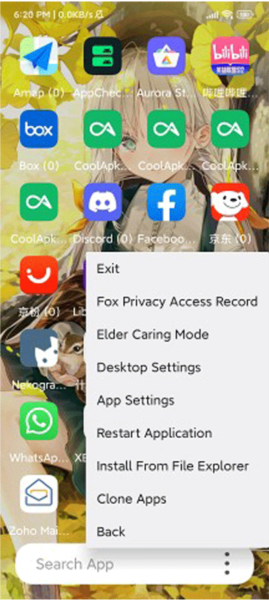 4、还有一个最重要的功能,那就是支持多开,只需要在伏羲X桌面克隆的APP图标上长按,选择克隆App