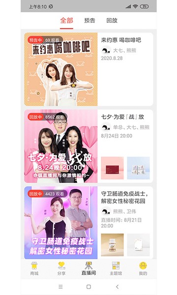 4、能够回放观看带货直播,进入回放页面中查看往期直播的内容;
