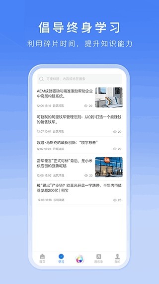 团队管理员发布与企业相关的学习资料,用户跨地域、跨时间方便快捷地学习所在组织(多组织)发布的学习文章资料,利用碎片化时间提升自身的认知和能力。