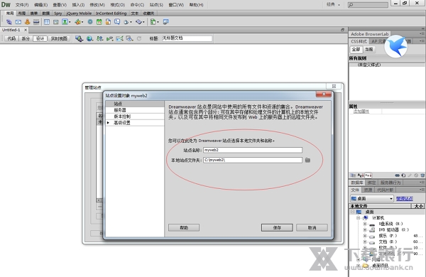 2、打开Dreamweaver,新建一个站点,重命名为“myweb2”。