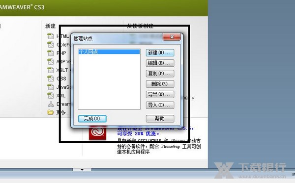 3、在“管理站点”对话框中,单击“新建”按钮。