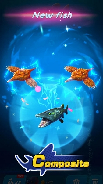 3、独特的合成机制可以让你获得更强的鱼类,不断的合成来获得更多稀有的鱼类。