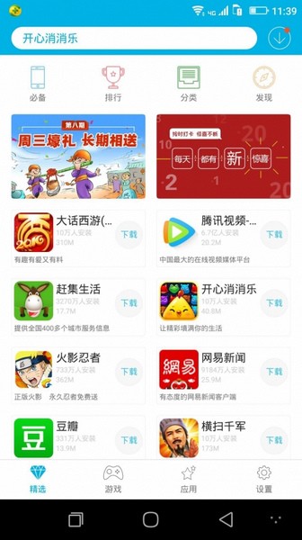 1、在这里可以找到大量流行的游戏,满足用户的游戏需求。
