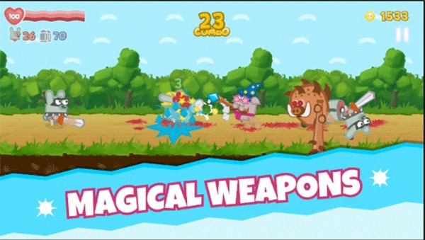 消灭敌人:玩家在游戏中要操控小猪不断消灭袭来的各种敌人。