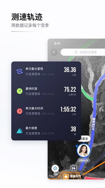 7、滑雪轨迹记录:GOSKI应用可以记录用户的滑雪轨迹,包括速度、路线等信息,让用户可以回顾自己的滑雪表现。