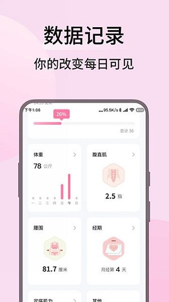 填写个人数据,准确计算BMI,36条产后修复计划,全方位辅助你的产褥期