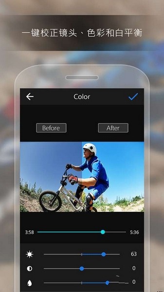 1、极速剪辑:一键修补 - 内建强大调整工具,一次解决从裁剪、调整亮度、白平衡到对比度修正等问题