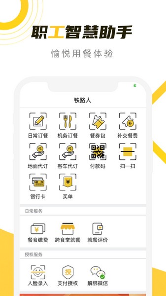 铁路人app订餐系统是一款专供铁路局员工食堂用餐的手机线上订餐软件。这款软件可以让员工线上预订餐食,规划好每天每顿饭吃什么、吃多少,还可以上传图片来点评每一道菜,为食堂改良饭菜提供建议。用户可以通过软件来为自己的饭卡充值余额,使用软件代替饭卡进行扫码消费,也可以购买餐券前往指定地点用餐。