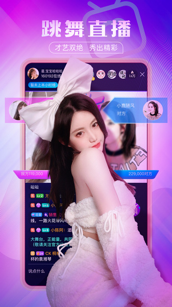 海量主播,色艺双绝。唱歌、跳舞、说段子、唠嗑、互动小游戏,气氛嗨、人气足,新潮又好玩!