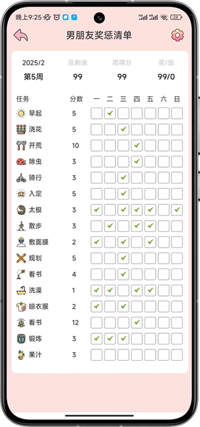 1、在软件中就可以让情侣双方自己创建对应的自律清单了;