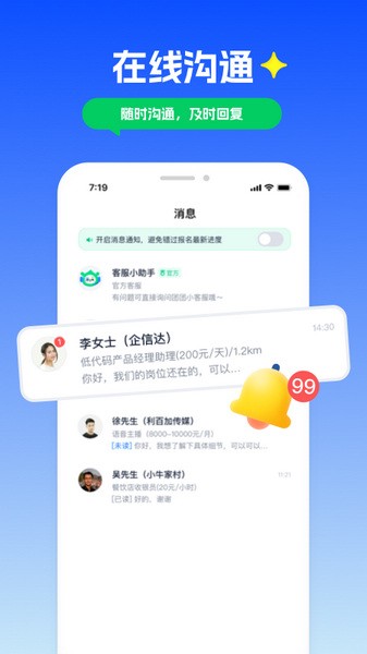 操作起来也特别简单,打开APP就能看到各种兼职信息,一键报名就能搞定。还有专业的客服顾问全天在线,随时解答你的问题。无论是想在家赚钱还是找附近的工作,这里都能满足你的需求!