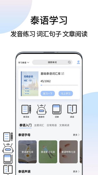 4、泰语词库:泰语有声双语词库学习,符合人类遗忘曲线规律的智能学习模式