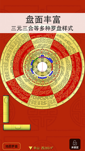 精密罗盘指南针app是一款实用工具类应用,在这里为各位用户们提供了带有罗盘工具的指南针,用户们可通过软件方便快速的获取当前的方位和朝向。软件中还提供了房屋风水分析功能,根据房屋的坐落朝向给出分析,还提供了日期黄历、水平尺、鲁班尺等多种工具。