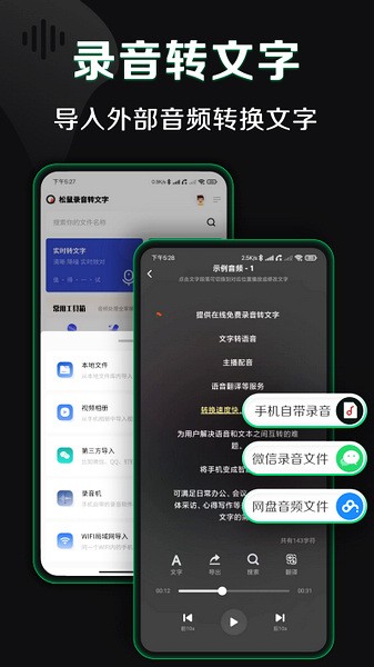 2、实时转写:软件配备了精准的录音转文字功能,可以将外部录音实时转换为文字,方便用户们快速获取录音的文本内容。