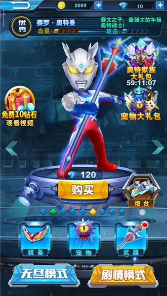 游戏中收录梦比优斯、迪迦、赛罗、欧布等诸多大家耳熟能详的奥特曼英雄,解锁后还可进行升级,升级可提供其血量和攻击力。