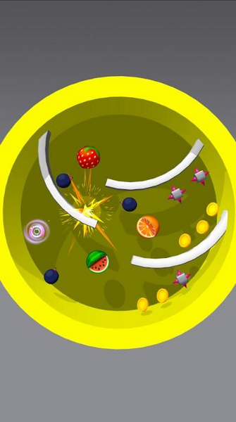 2、玩家需要操控类似小球的物体在带有各种障碍物的圆形区域内移动,屏幕上方的数字代表游戏的得分或剩余次数等。