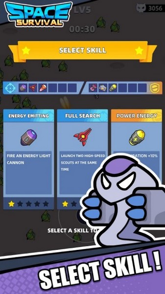 3、消灭敌人之后就会掉落绿色能量,捡取会增加经验值,经验值满了之后就可以选择技能了。