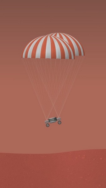在任意一个拱点减速,直到轨道变成一条几乎重叠的抛物线。继续向下减速,让抛物线的顶点降低。着陆器预备(请不要在意这个低仿的空中吊机)。进入行星大气层,继续减速。不推荐新人去登陆没有大气的星球,因为降落伞无法展开比较难控制。如果登陆器是要重复回收利用的,尽量不要打开降落伞,直接用发动机来控制速度。成功着陆(图6)着陆速度不应该超过3米每秒,不然登陆器可能会摔坏。抛掉起重机。