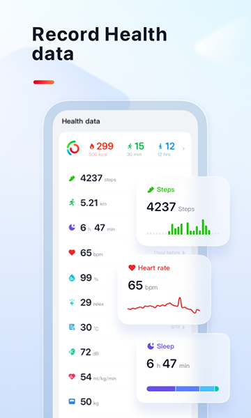支持监测用户的心率以及血氧数据,持续分析自身的每分钟心率数据变化;