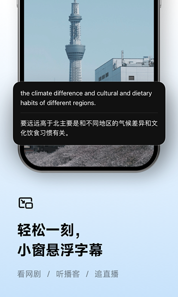 3、点击下方的“悬浮字幕”按钮,app转写翻译的文字会自动缩小为“悬浮字幕”框。