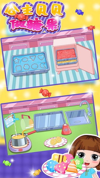 3、画风生动可爱,背景音乐与画面完美结合,让小朋友们宛如身临其儿童厨房,培养孩子学做糖果的兴趣,激发做甜品的动力,锻练孩子自行去探索,去发现的好习惯。