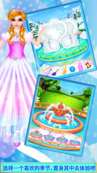 3、玩家需分别为女王设计冬季冰雪主题和夏季花园主题的舞会装扮,参与两场主题妆容比赛,体验不同季节的魅力。