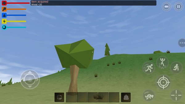 1、捡木头和石头来制作工具。制作武器,保护自己免受僵尸骚扰并收获僵尸和野生动物的装备。