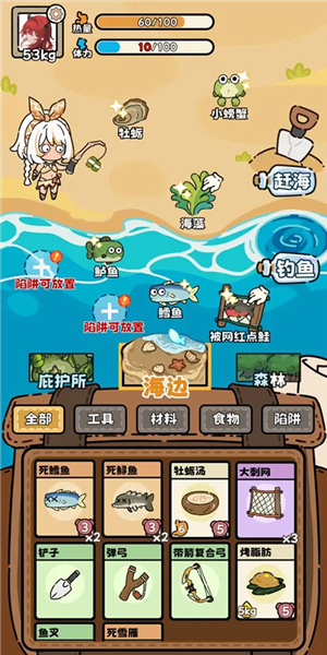 3、钓鱼很亏!最好别钓(赶海摸到鱼饵了还是能钓一下的)前面多砍树,最好15天时能攒个70左右木头(后面化冰用)如果能奇物能选到树脂的话就用不到那么多。