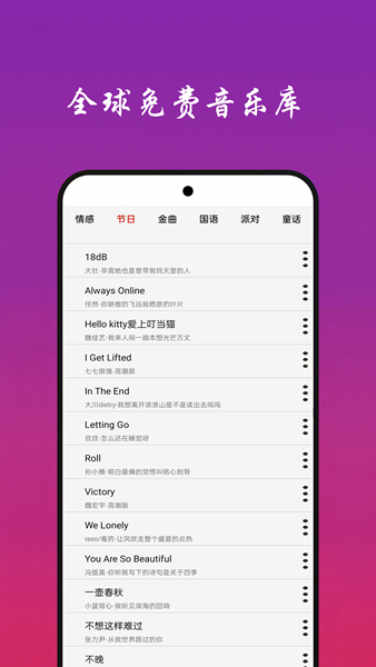 3、免费使用:可以免费试听或下载音乐,特别适合那些喜欢收听音乐而对付费应用不感兴趣的用户。